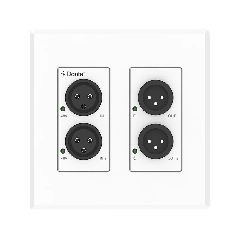 이 소형 2채널 아날로그 XLR Dante 변환기는 Dante® Ultimo 2x2 플랫폼을 활용하여 기존 아날로그 오디오 장치를 Dante® 디지털 네트워크에 원활하게 연결합니다. 표준 2-GANG US 월 플레이트로 설계되어 기존 오디오 시스템과 최신 오디오 시스템 모두에 유연한 통합을 제공합니다.